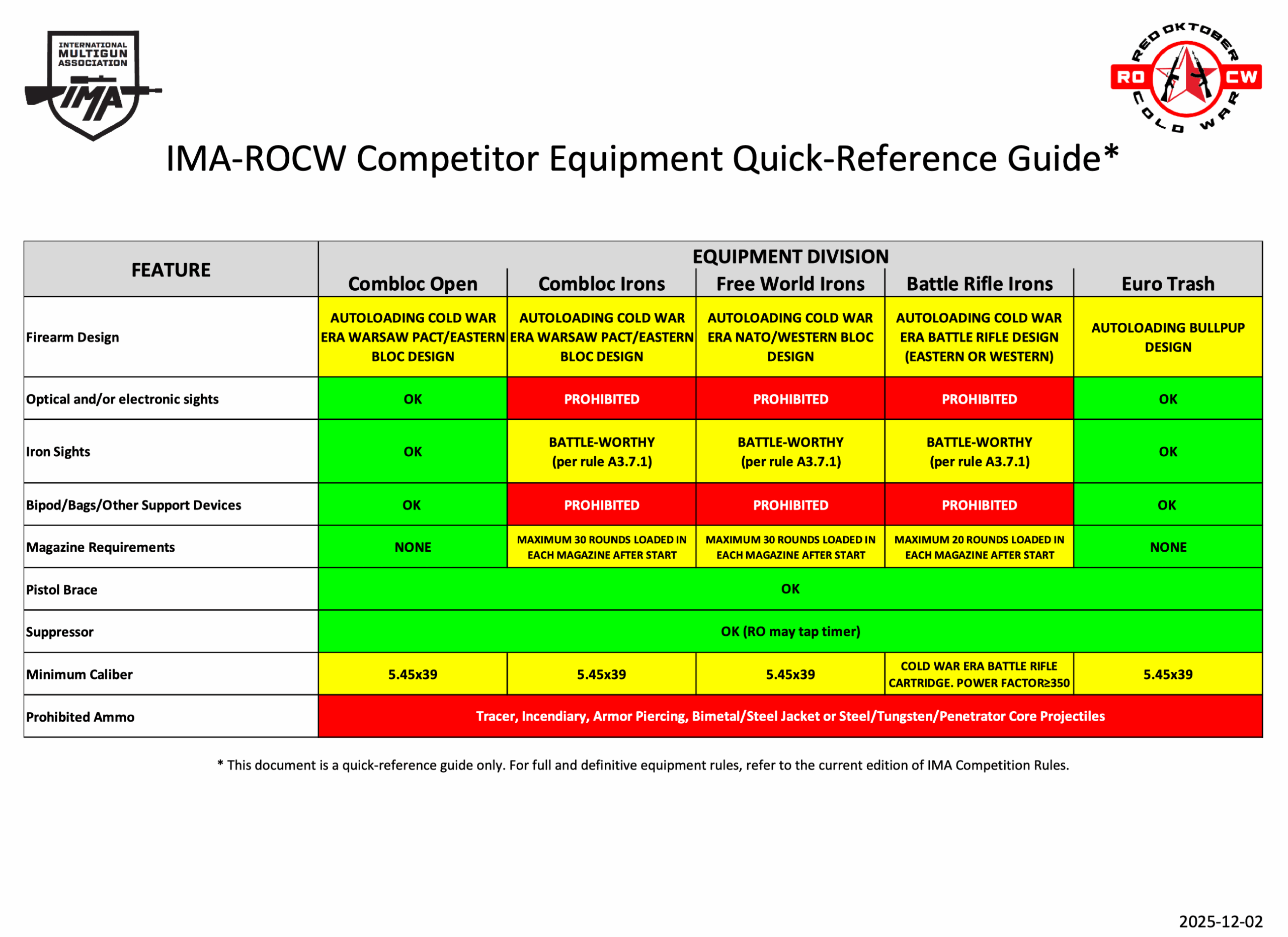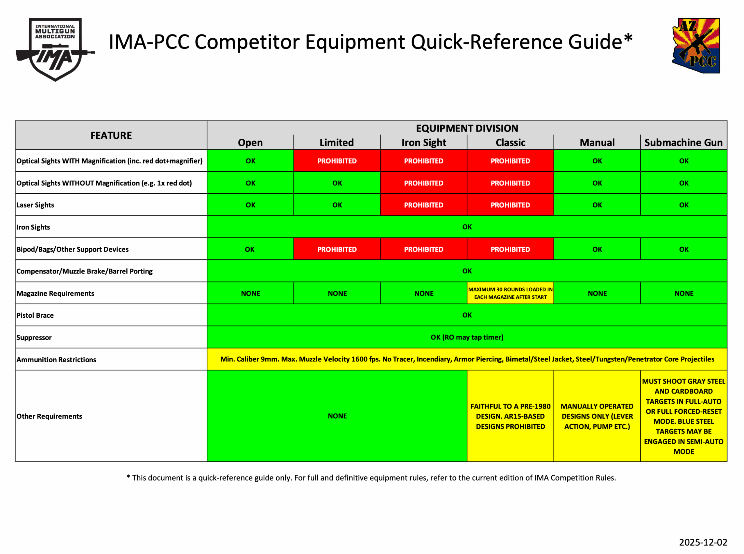 IMA MULTIGUN DIVISION COMPETITOR QUICK REFERENCE GUIDE